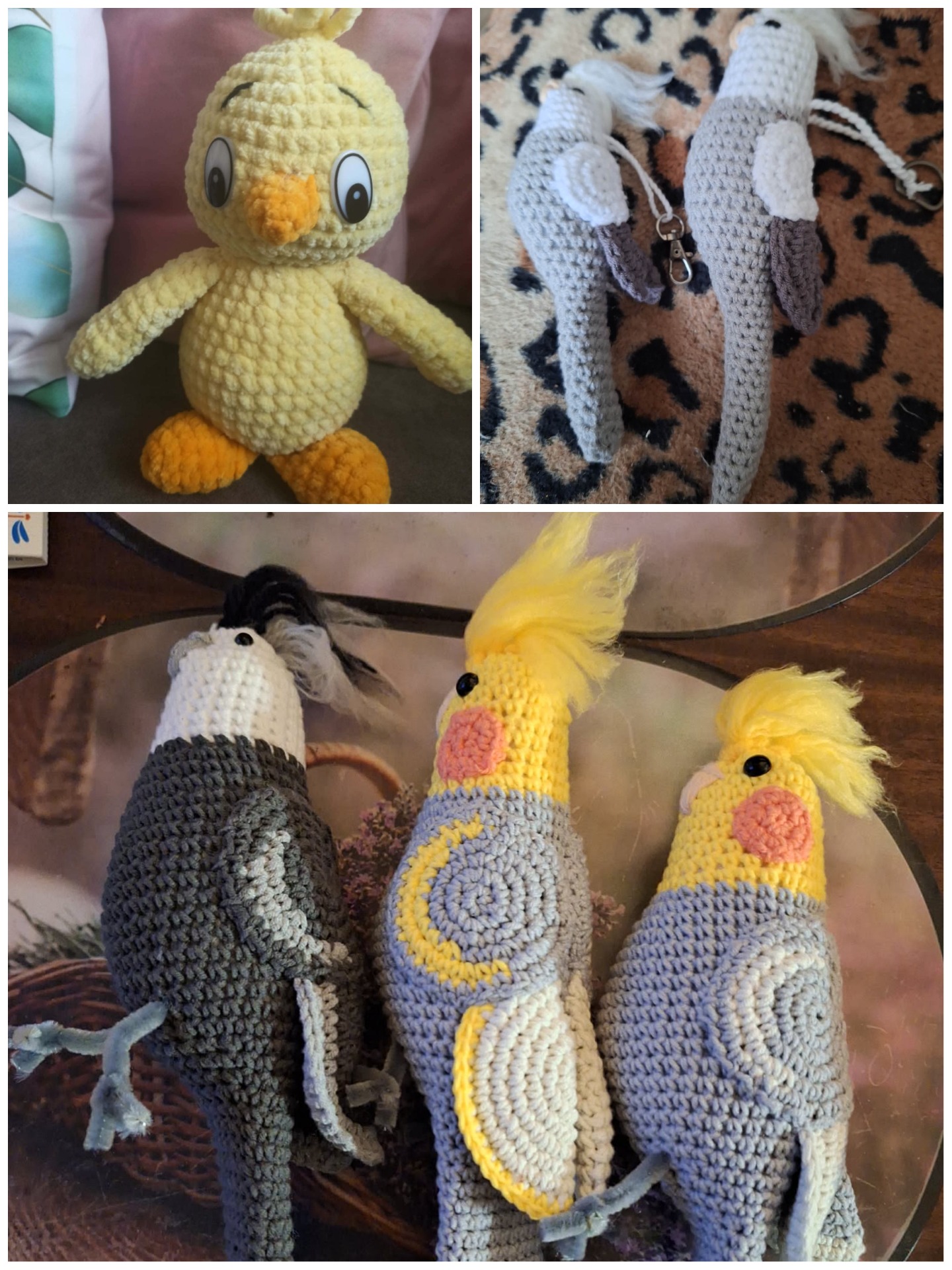 Krásní ručně pletení papoušci na zakázku